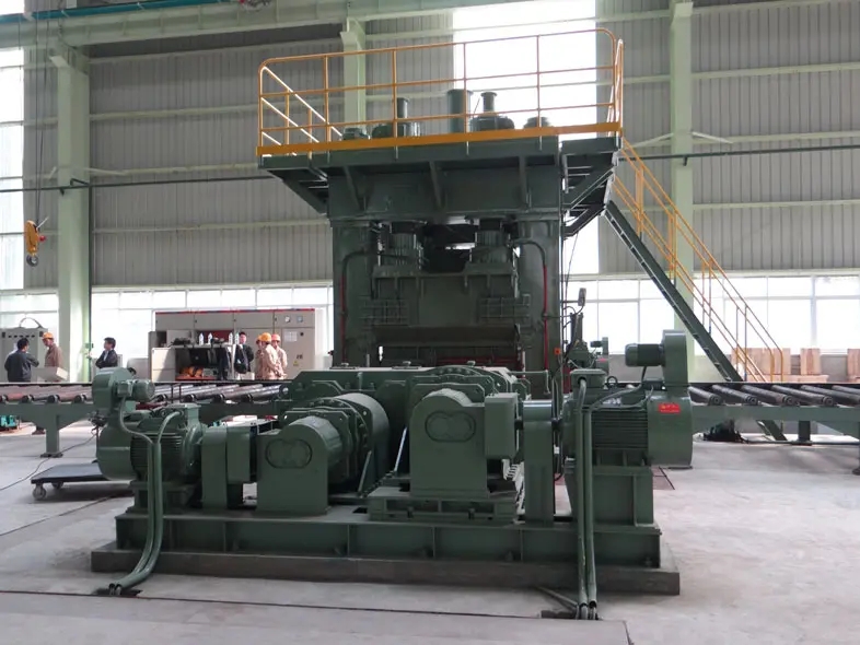 - 传动装置采用分流式主传动技术,多台电机运转带动多根工作辐条转动。进出料轨迹由辊式矫平机控制台控制,电动可逆,保证两者运动速度相同。