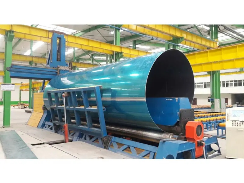 机器的上辊可以垂直和水平移动。垂直提升是液压传动。液压缸中的液压油作用在活塞杆上,以获得水平运动。扭矩通过涡轮杆箱、涡轮滚轴和螺杆机构传递,以驱动上辊。滚筒的水平运动,下辊只旋转为液压折弯机提供扭矩,下辊配备了可调节的怠速滚筒,上辊呈滚筒形状,这提高了产品的直线度。它适用于各种横截面形状的拖车的油罐的滚动。EZHONG是中国领先的液压卷板机制造商之一,我们以合理的价格出售高品质的液压机。